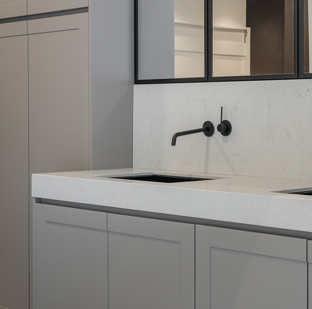 ‘’Natuursteen’’ in de badkamer is niet enkel functioneel en esthetisch. Het is een ideaal materiaal voor uw badkamer. Hoge duurzaamheid, waterbestendigheid en fijn in onderhoud. Het gebrek aan naden zorgt tevens voor een mooie, strakke look.