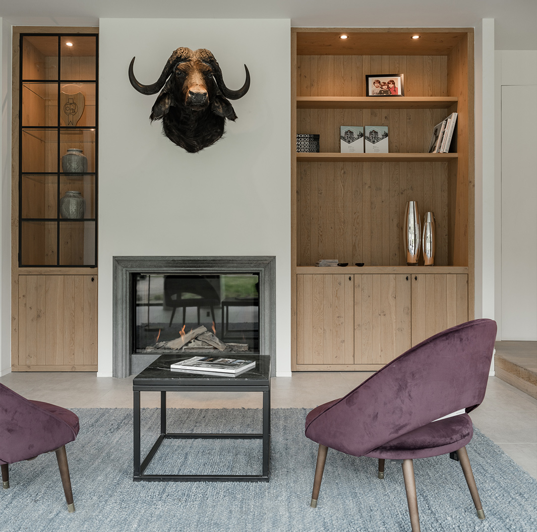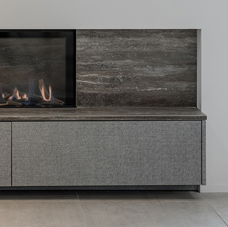 Voor een recent project hebben we een indrukwekkende haard bekleed met Arduin, een elegante blauwe steen uit België. De gekozen geschuurde afwerking accentueert de matte, tactiele kwaliteit van de steen, waardoor een rustieke en verfijnde uitstraling ontstaat. De arduin (blauwe steen) werd met precisie op maat verzaagd en de omlijsting in verschillende niveau’s opgescheurd. Het resultaat? een haard die zowel een visueel statement maakt als functioneel is, en een warme en uitnodigende sfeer creëert in de ruimte.