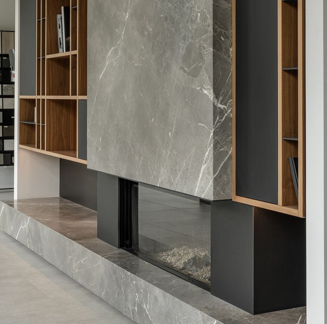 De mat afgewerkte oppervlakken van Geo Gris accentueren de natuurlijke kleurvariaties en patronen zonder overmatige reflectie, wat zorgt voor een elegante en moderne esthetiek. Deze afwerking is bijzonder praktisch voor een haard, omdat het de zichtbaarheid van roet en vlekken vermindert en het onderhoud vergemakkelijkt. Het keramiek is ontworpen om hoge temperaturen te weerstaan, waardoor het een duurzame en veilige keuze is voor gebruik rondom warmtebronnen.